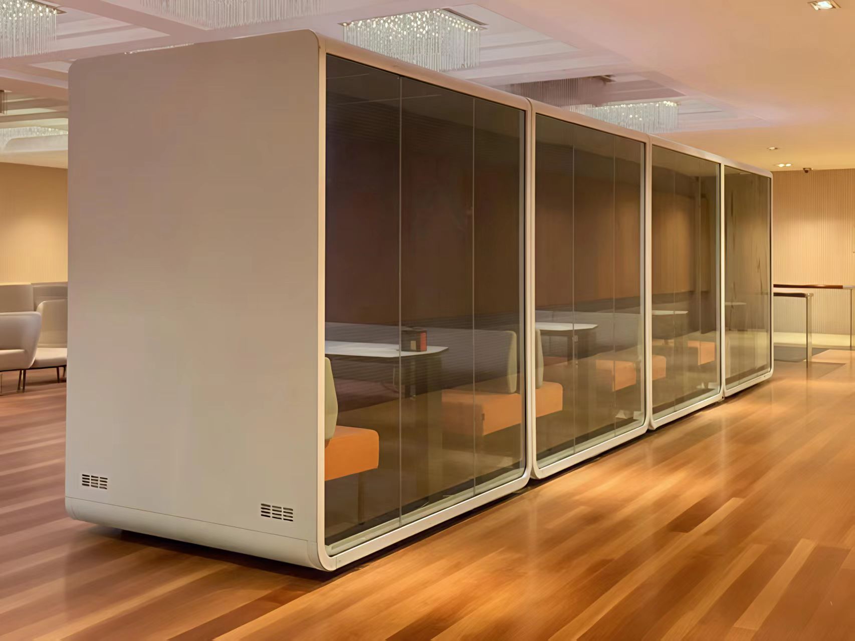 Centrum představilo Tamadovu zvukotěsný chatovací modul, navržená jako modulární soukromá kabina s vynikající zvukovou izolací. Každý modul má:
