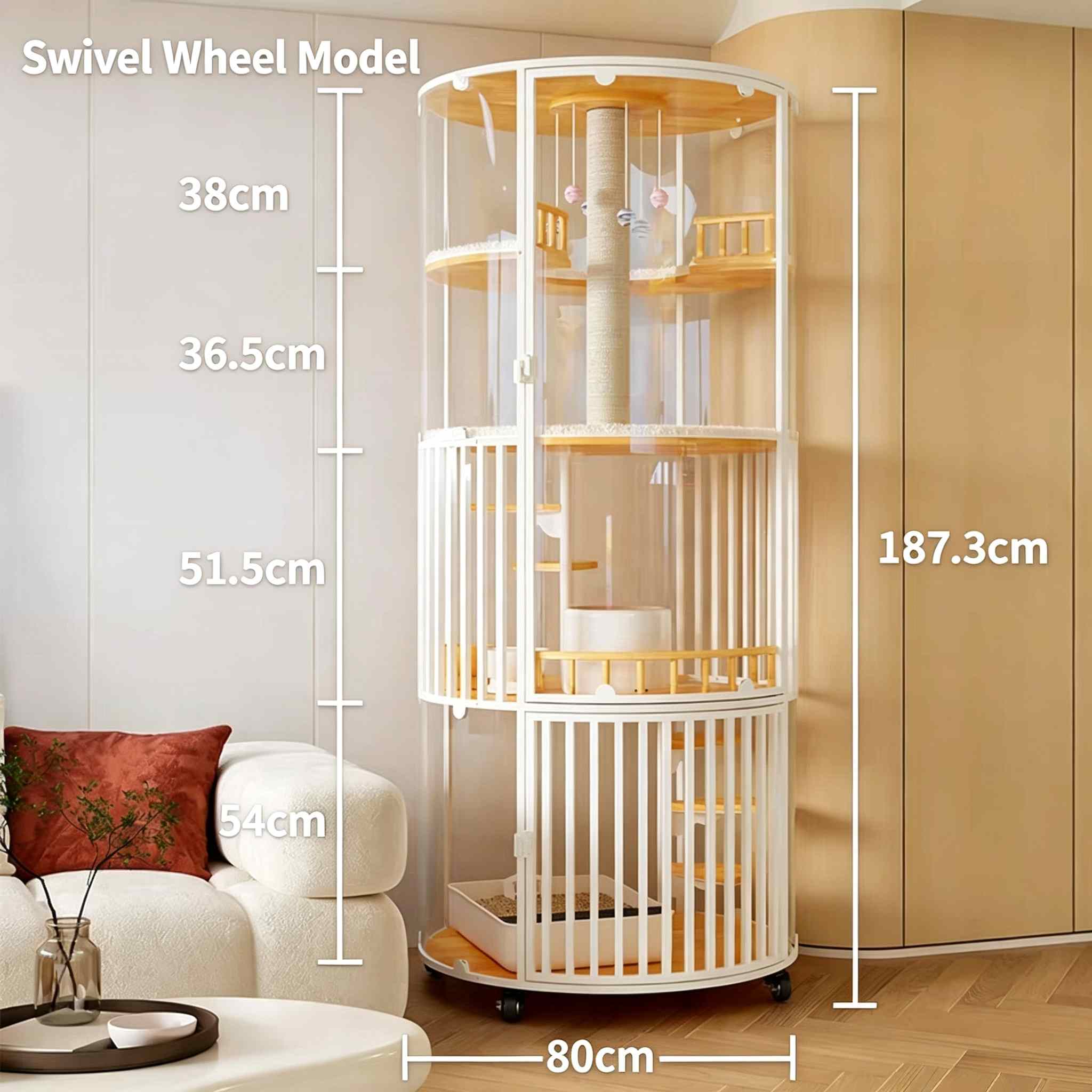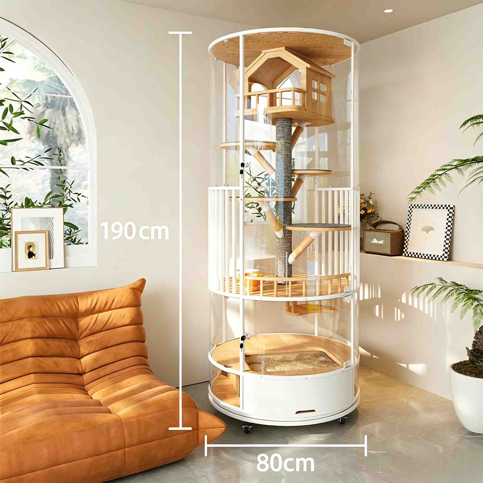 The luxury movable glass cat villas is designed exclusively for indoor cats, the bombine styl;e and practical function serving as true "sky mansion" for your family friend.