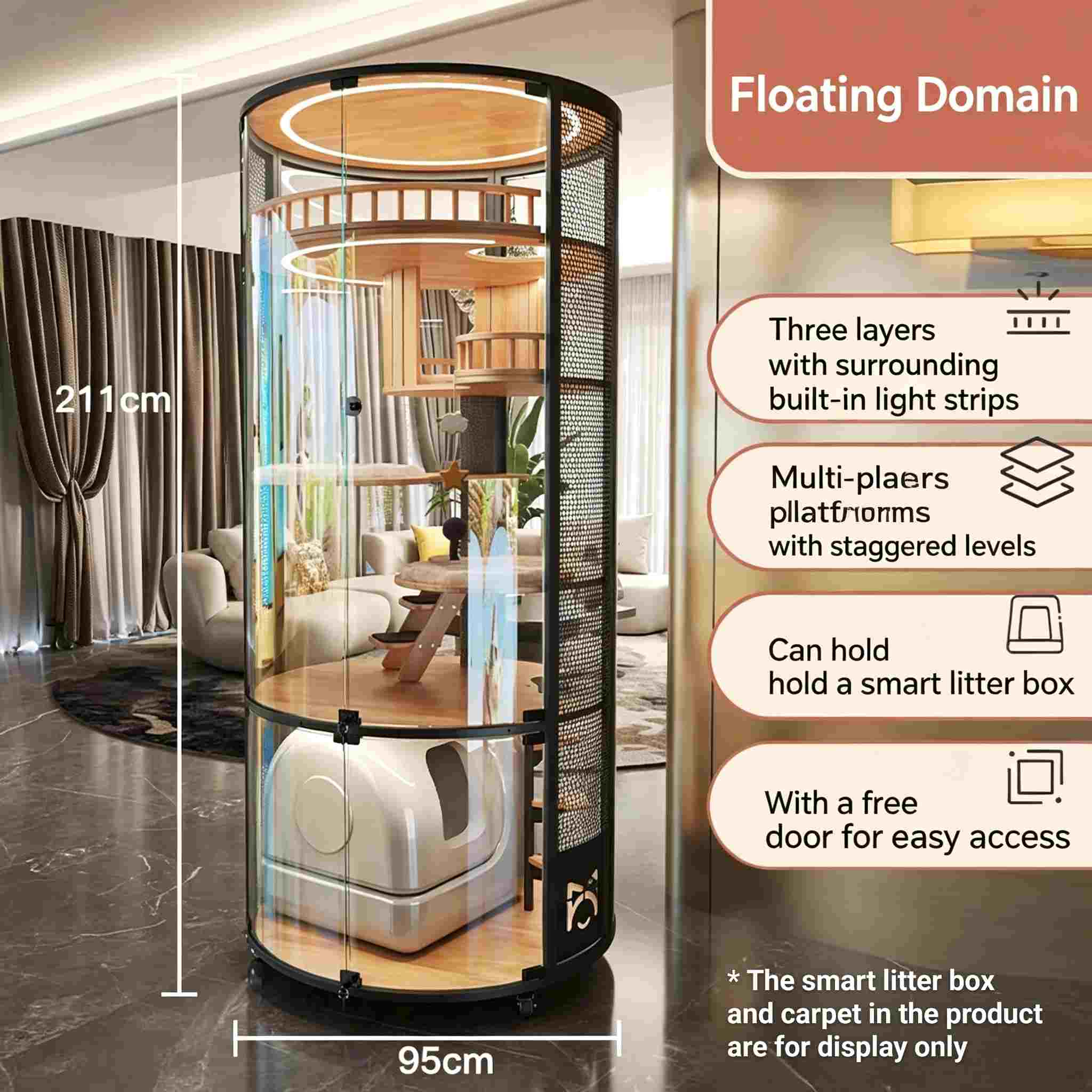 Integrated Layout: Reserved space for litter boxes (including smart litter boxes) at the bottom, creating a separated "toilet-play-rest" area for cleanliness and convenience.