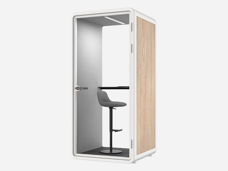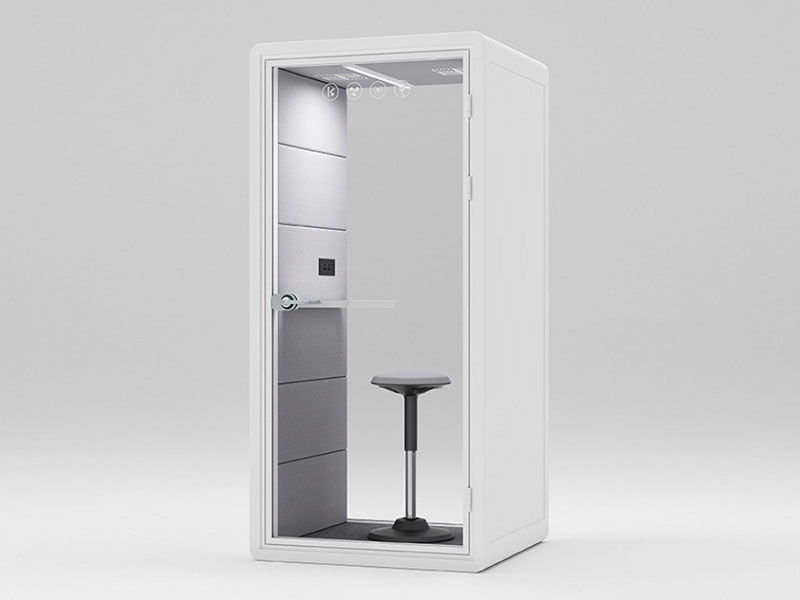 Telefonní budka pro jednu osobu v kanceláři: je druh kompaktní a uzavřené struktury, která je speciálně navržena tak, aby poskytovala soukromý a tichý prostor pro samostatnou práci, pro ty, kteří otevírají kanceláře a sdílené pracovní prostory pro telefonování nebo se soustředí na samostatnou práci bez rušivých vlivů - aby se zabránilo hluku, nedostatku soukromí a problémům s rušivými vlivy.