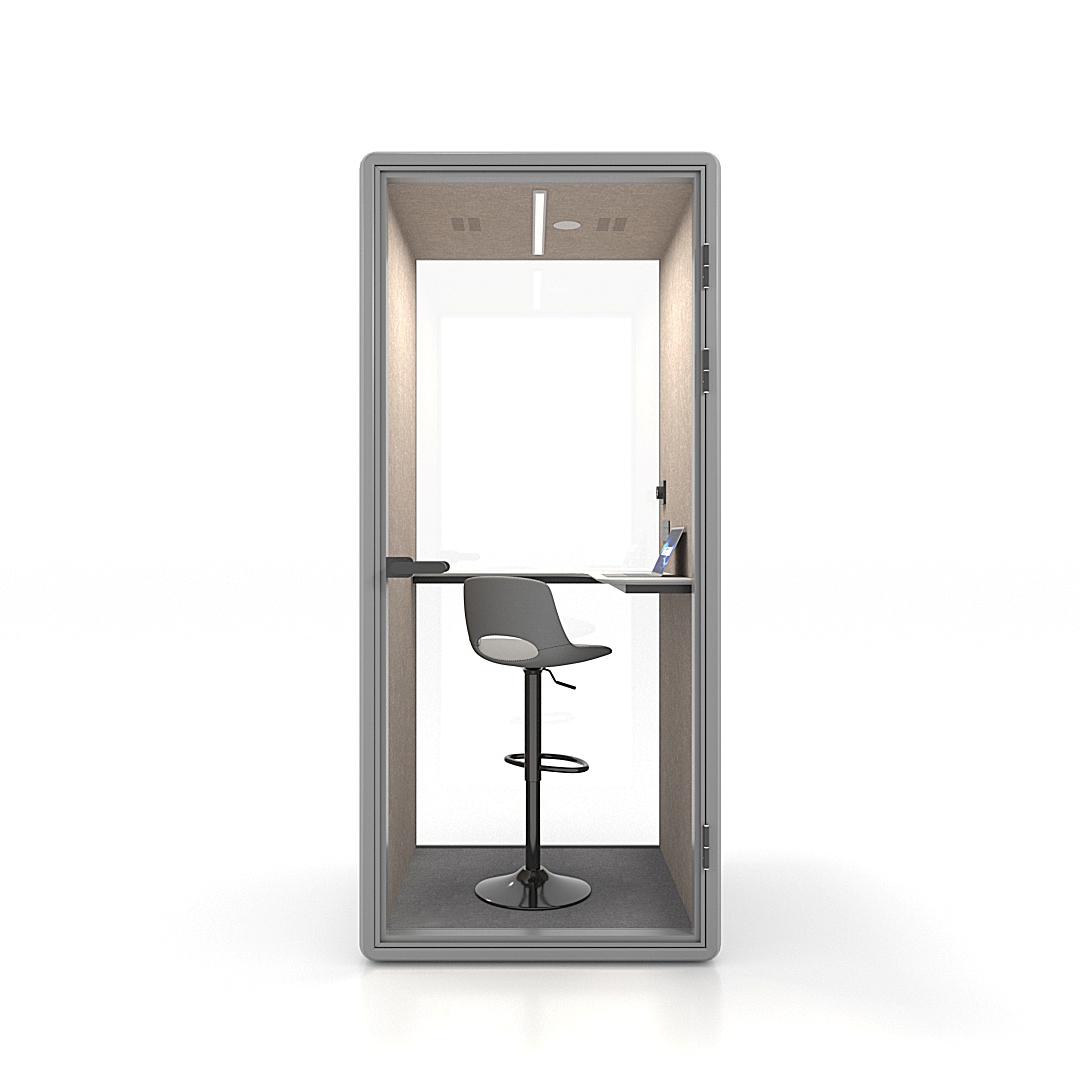 Telefonní budka pro samostatnou práci v kanceláři: je druh kompaktní a uzavřené struktury, která je speciálně navržena tak, aby poskytovala soukromý a tichý prostor pro samostatnou práci, pro ty, kteří otevírají kanceláře a sdílené pracovní prostory pro telefonování nebo se soustředí na samostatnou práci bez rušivých vlivů - aby se zabránilo hluku, nedostatku soukromí a problémům s rušivými vlivy.